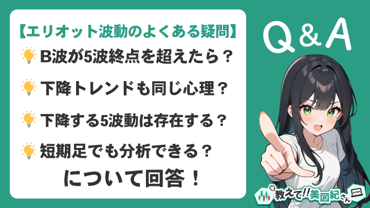 ここでは、エリオット波動の各波の分析や相場心理を考える上で、多くのトレーダーが抱きやすい疑問についてQ&A形式でお答えします。