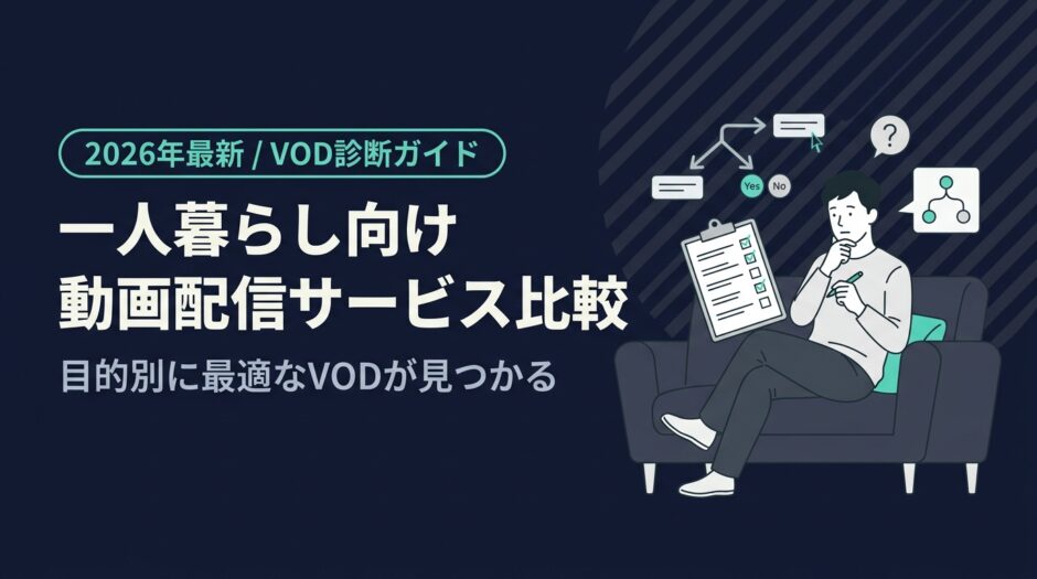 作品数なら U-NEXT、コスパなら DMM TV、オリジナル作品なら Netflix、一人暮らしの生活インフラなら Prime Video、と役割が分かれています。